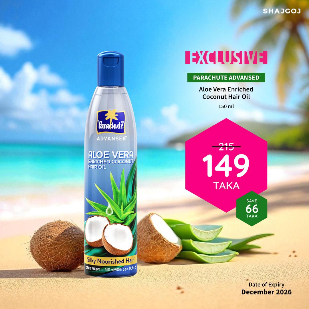 Parachute Advansed Aloe Vera Enriched Coconut Hair Oil , For Strong, Soft & Silky Hair,Deep Nourishment & Conditioning, All hair Types, 5.1 Fl.oz. (150ml)