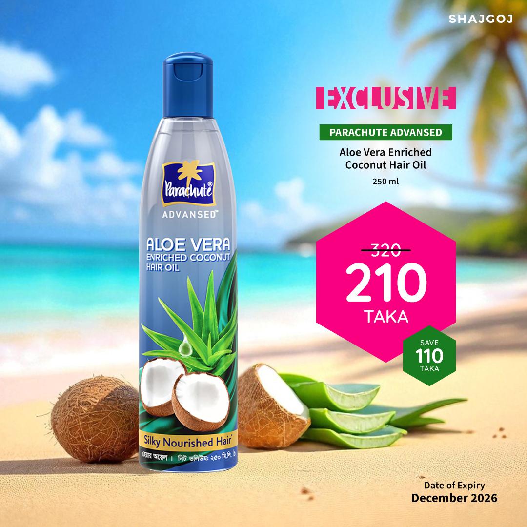 Parachute Advansed Aloe Vera Enriched Coconut Hair Oil , For Strong, Soft & Silky Hair,Deep Nourishment & Conditioning, All hair Types, 5.1 Fl.oz. (250ml)