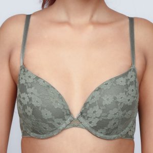Our new delicate - an artisan lace Push-up bra offers two-way stretch that moves with you and your curves. An elevated take on the traditional push-up category, this magic lift bra is made with plunge style padded cups that hug your body to eliminate gaping and emphasize your natural shape. The sparkling leaf motif lace is suitable for woman of any age. The cup wrapped in soft lacy fabric accentuates the beauty of your skin. The wide side belt with plenty of lace prevents the side chest from sticking out maintaining a stable posture. This push up bra gives an imaginative tone to your most personal essentials.