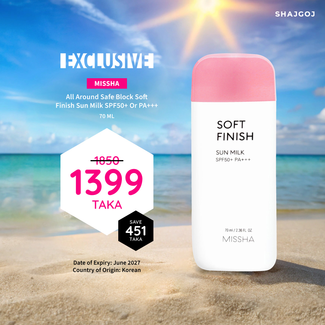 Jarin Anjum Jeba - August 20, 2024হ্যালো! Missha All Around Safe Block Soft Finish Sun Milk SPF50+ PA+++ সানস্ক্রীনটি কোরিয়ার তৈরি। Missha একটি জনপ্রিয় কোরিয়ান স্কিনকেয়ার ব্র্যান্ড।