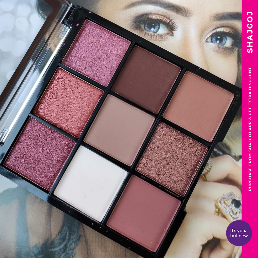 Play up your eyelids and with rich mattes and lustrous shimmery colors. Each palette is packed with an array of nine highly pigmented shades and long-lasting formula to blend with ease. Convenient to carry on the go and ready to be used in the day and night.