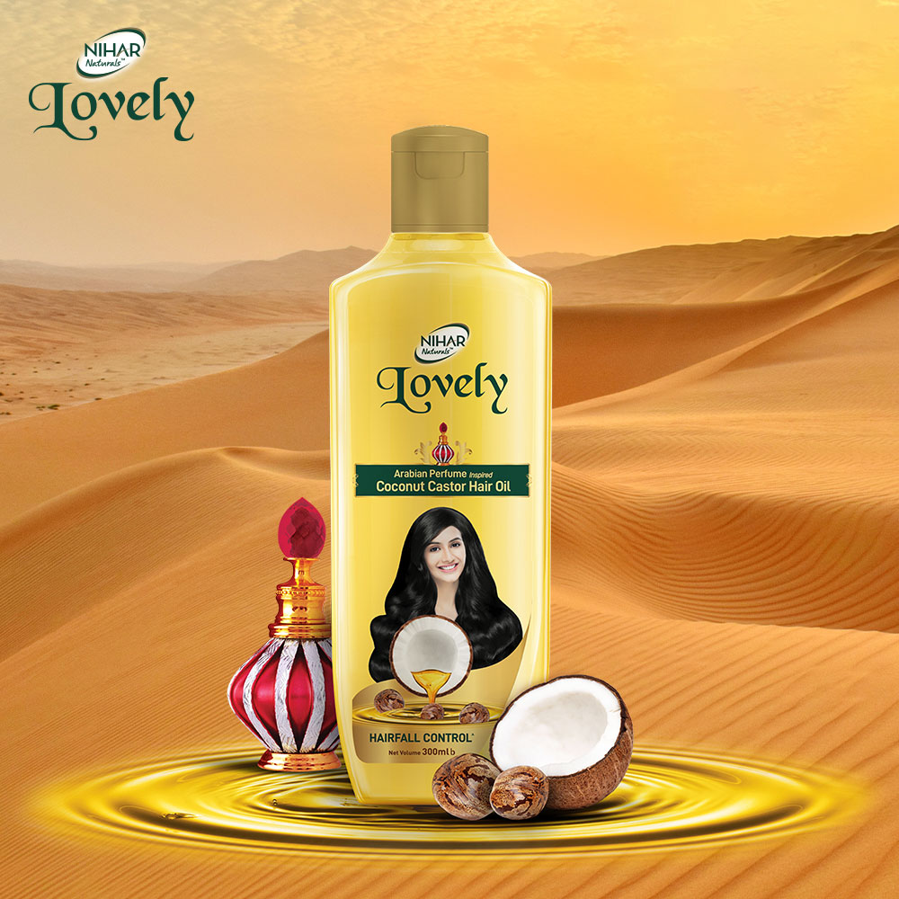 Nihar Lovely Hair Oil is a unique perfumed coconut non-sticky hair oil from the house of Nihar Naturals, the number one hair oil brand in the region.