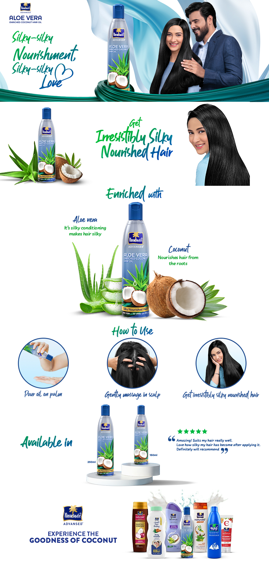 Parachute Advansed Aloe Vera Enriched Coconut Hair Oil , For Strong, Soft & Silky Hair,Deep Nourishment & Conditioning, All hair Types, 5.1 Fl.oz. 150ml Pack of 2 (150ml x 2)