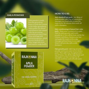 - Helps to get rid of dandruff: Rajkonna Amla powder is rich in vitamin C and other natural antioxidants which prevent dandruff and other fungal infections and improve scalp health.