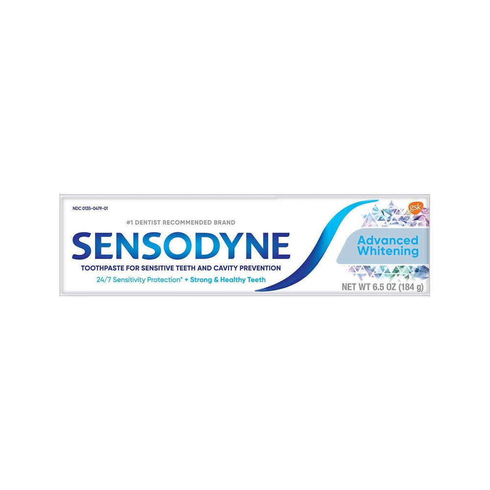 Sensodyne Advanced Whitening Toothpaste, 6.5 Ounce (4 Count) Sensodyne Advanced Whitening works inside the tooth to by building soothing protection around the nerve, relieving painful sensitivity. Superior whitening removes stains for a brighter, whiter smile. This advanced whitening action is specially designed for sensitive teeth- the low-abrasion formula provides gentle whitening, and helps bring back the natural whiteness of your teeth.